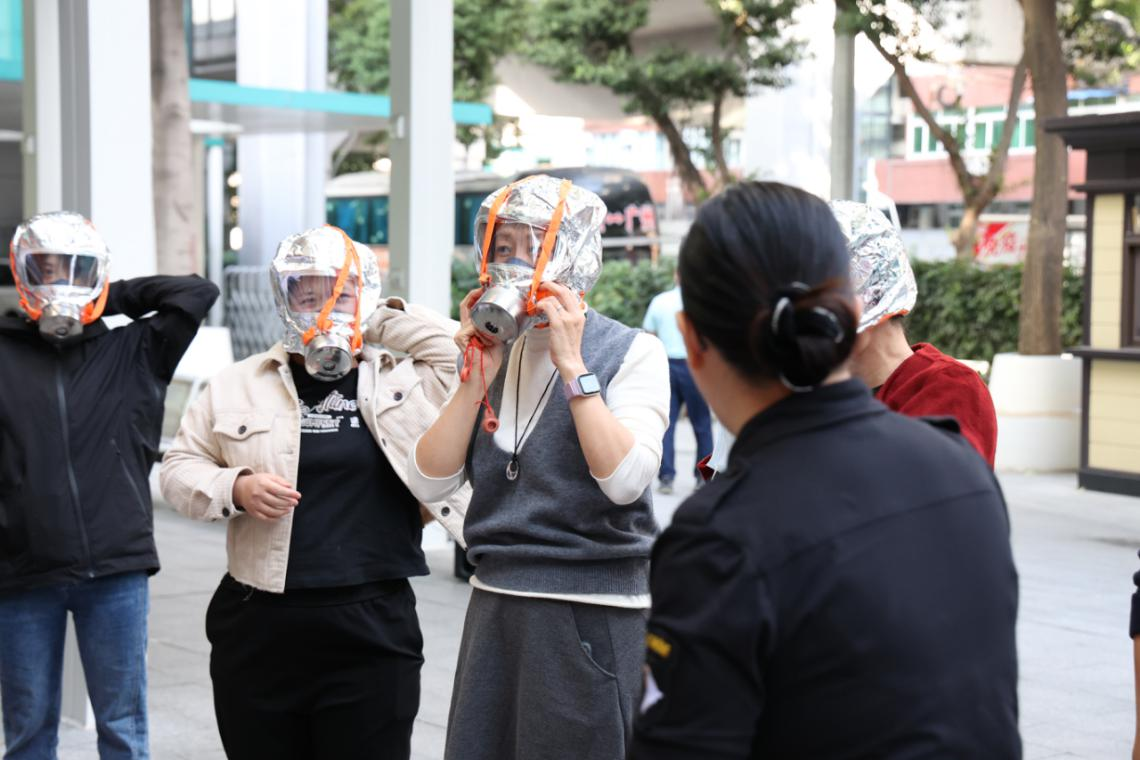 培训老师结合近期国内医疗机构火灾案例,以案释险、以例普法,细致拆解医院重点区域的火灾隐患排查要点,着重讲解了电器设备规范使用、易燃物品存放管理等日常消防安全知识。实操演示环节手把手教学灭火器“拔销、瞄准、按压、扫射”的规范操作流程,以及消防防火面罩的检查、佩戴、气密测试、头带调节等关键步骤,针对操作中容易出现的错误进行逐一纠正,确保每一位参与者都能掌握核心技能、规范操作流程。
